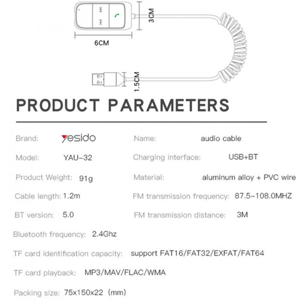 YESIDO محول صوت لاسلكي وaux للسيارة FM موديل YAU32
