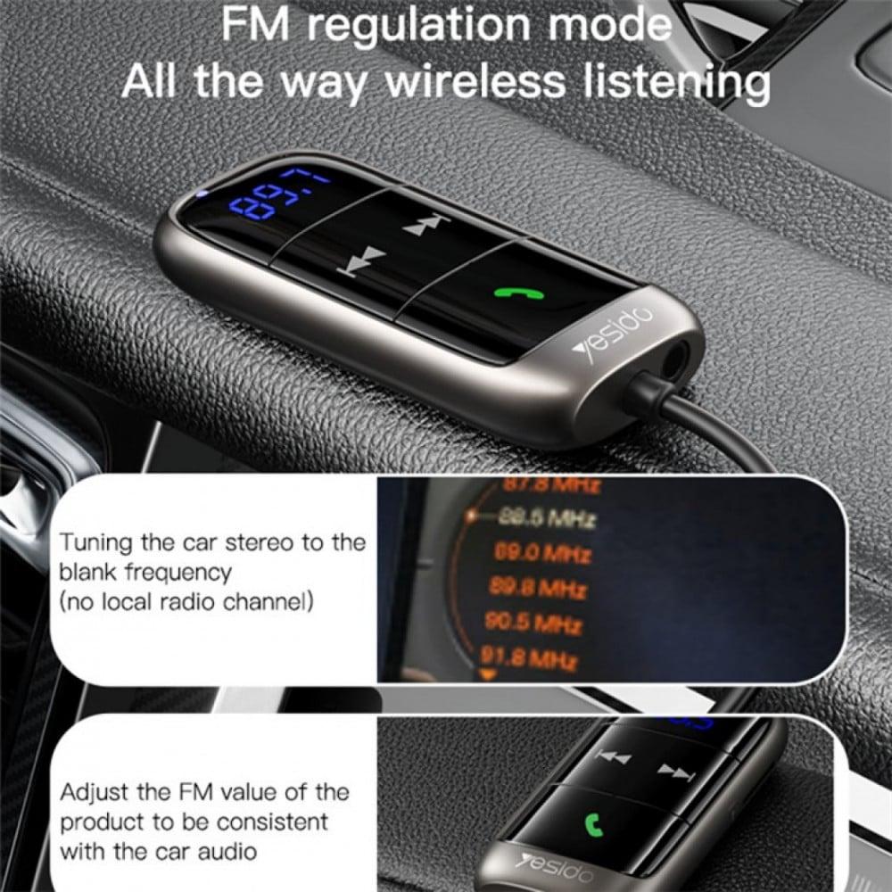 بلوتوث الإصدار 5.0 شاشة رقمية ال اي دي دعم بطاقة TF توصيل جهازينجهاز استقبال بلوتوث للسيارة من Yesido موديل YAU32YESIDO محول صوت لاسلكي وaux للسيارة FM موديل YAU32ضمان سنتين...