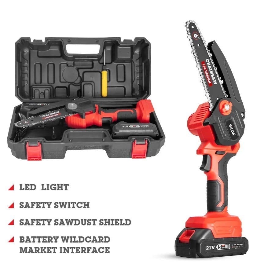 منشار جنزيري كهربائي صغير لاسلكي محمول باليد من دينكس - منشار سلسلة صغير يعمل بالبطارية 4 انش مع بطارية ليثيوم قابلة لاعادة الشحن